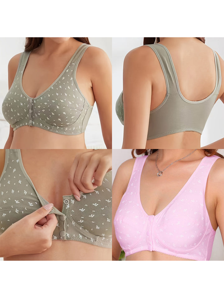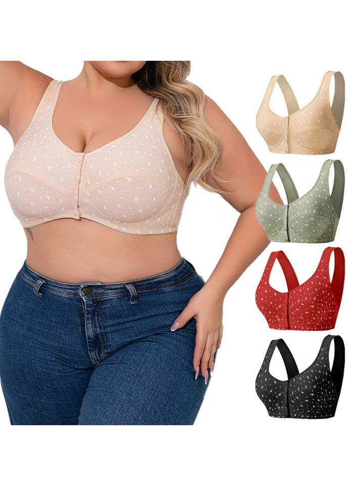 Discover the perfect blend of comfort and elegance with our Floral Print Thin Lightweight Push-Up Front Closure Wireless Bralette. Designed for plus-size women, this bralette features a delicate floral print and breathable thin fabric that ensures all-day lightness and comfort. The front closure design offers easy wearability, while the wireless push-up cups provide natural lift and enhanced shape without compromising comfort.