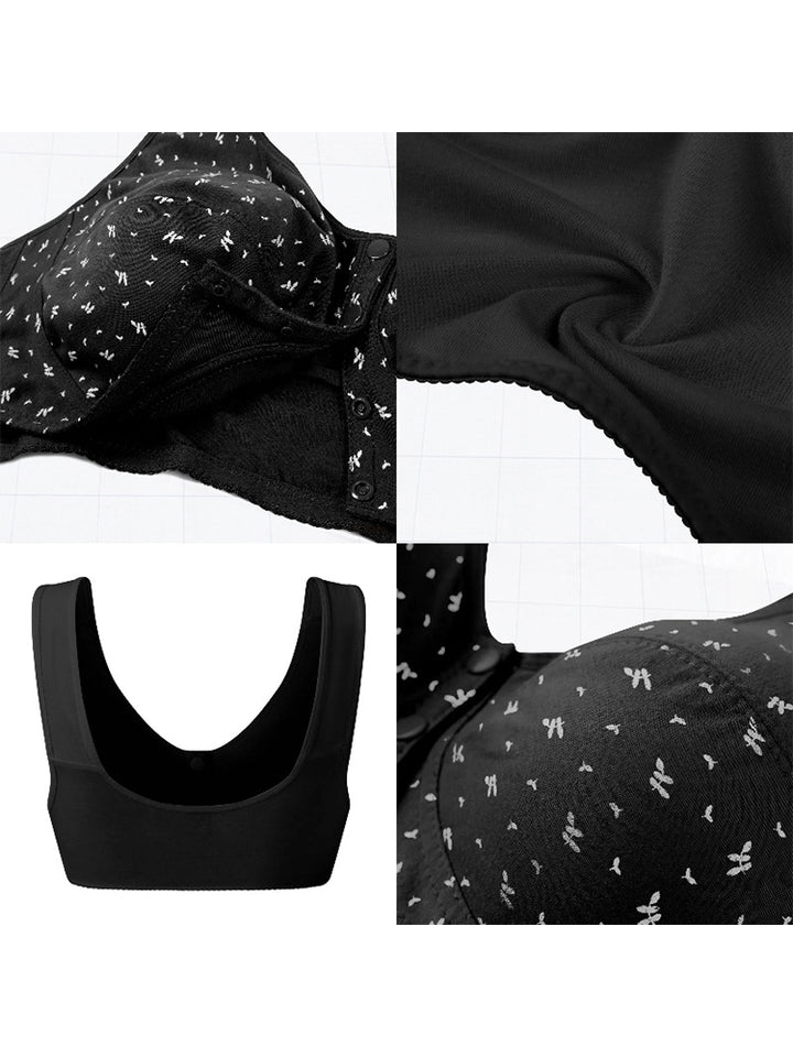 Floral Print Thin Lightweight Push-Up Front Closure Wireless Bralette