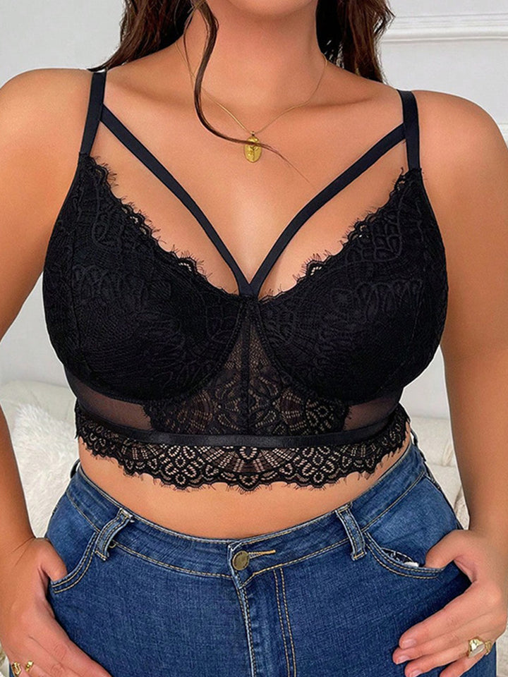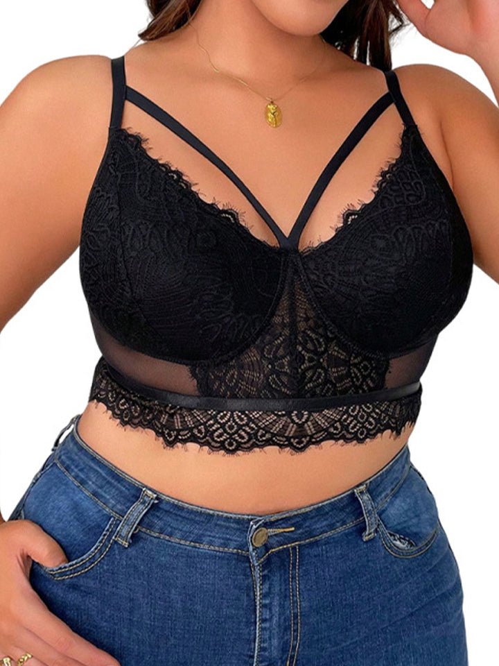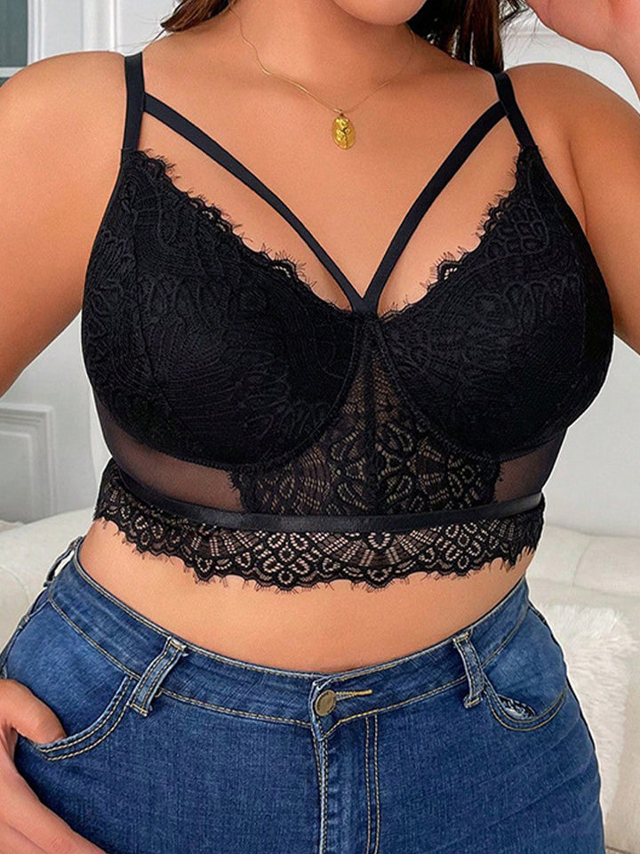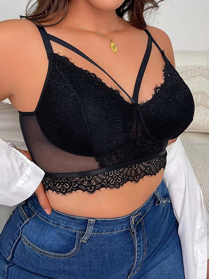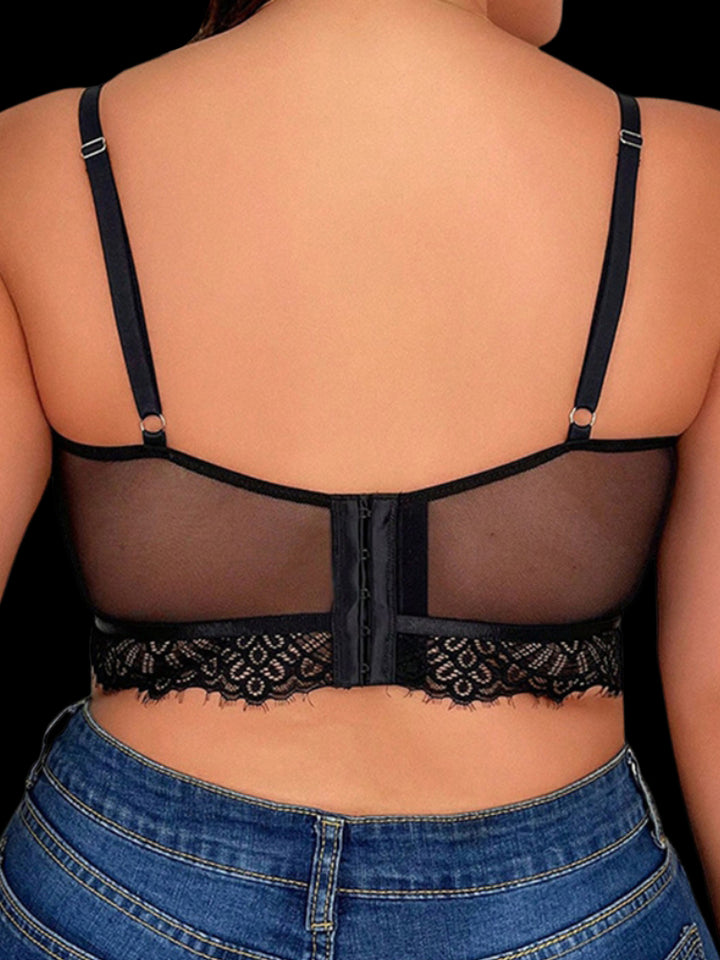 Plus Size Sheer Mesh Lace Bra - Embroidered Corset Vest for Full Bust