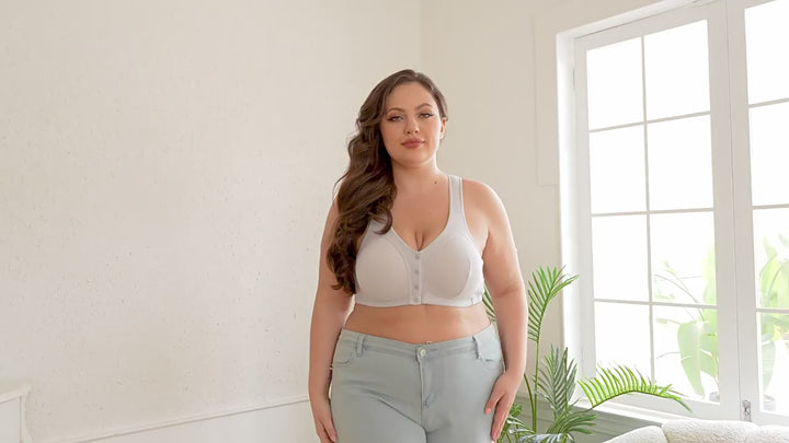 Discover cloud-like comfort with our Women's Cotton Wirefree Front Closure Bra, designed exclusively for plus sizes. Crafted from ultra-breathable 95% cotton and 5% spandex, this unlined bra eliminates underwire digging while providing gentle lift and full-coverage support through its innovative 2-ply construction. The front-hook closure ensures effortless dressing—ideal for limited mobility, post-surgery recovery, or breastfeeding needs.
