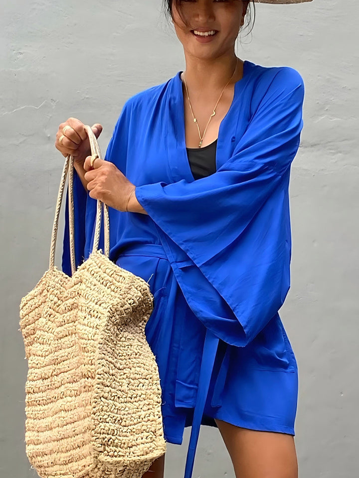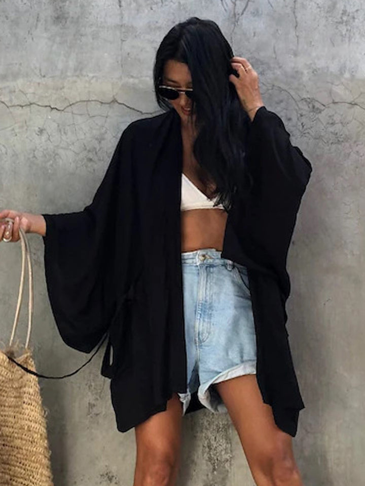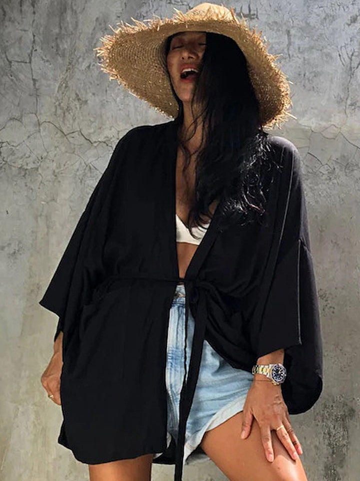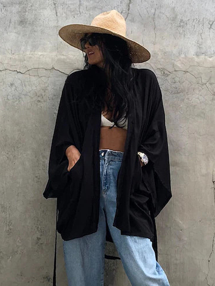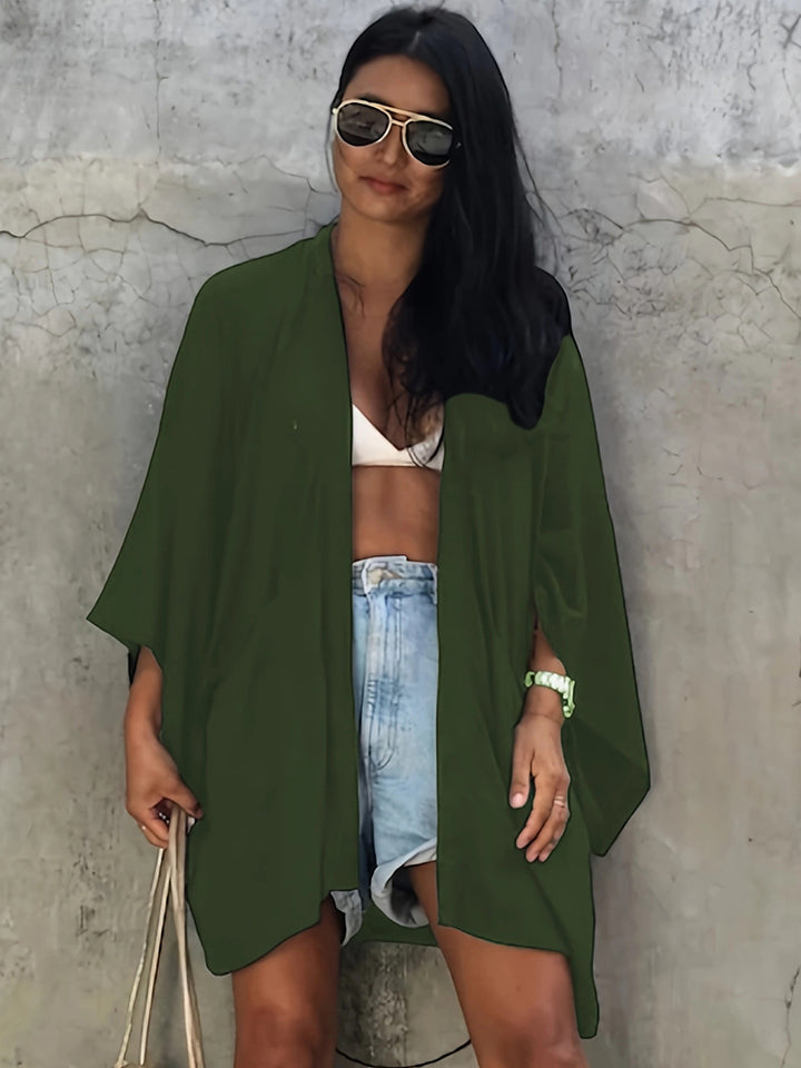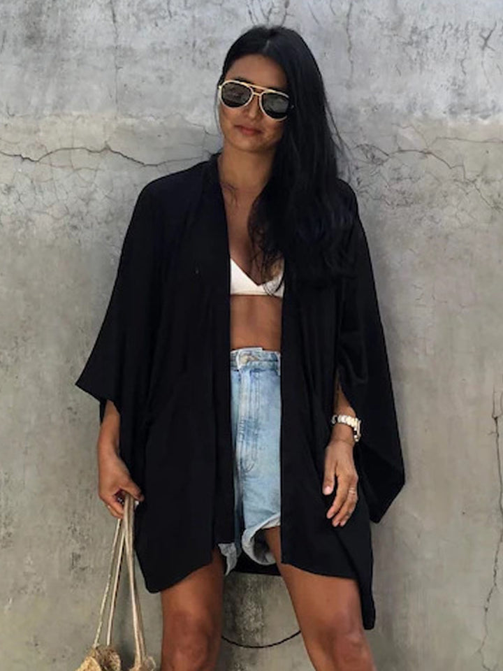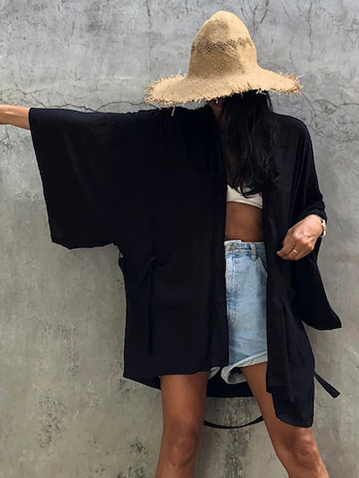Embrace sun-soaked style and comfort in our 100% Cotton Kimono Cover-Up! This incredibly versatile beach essential effortlessly transitions as a lightweight kimono cardigan, a breezy loose-fitting tunic, and a chic sun-protective shawl – perfect for strolls along the shore. Designed with breathable, premium cotton fabric, it offers soft comfort and superior breathability, making it your ultimate shield against harsh UV rays during vacations. Slip easily over swimwear for modest poolside moments or elegant seaside dinners. The oversized, flowy silhouette ensures all-day ease and flattering coverage, while UPF sun protective properties guard your skin. Experience effortless style and confidence – shop this must-have cotton beach cover-up for your next getaway!