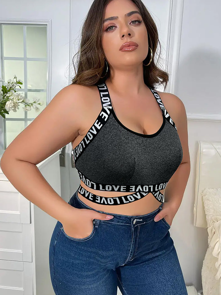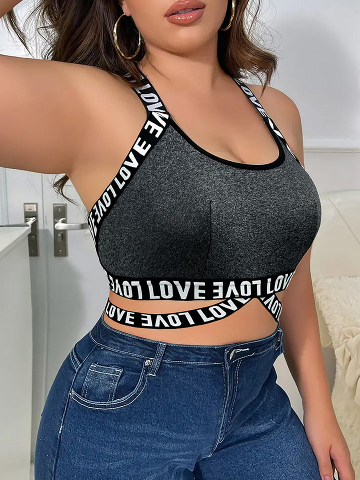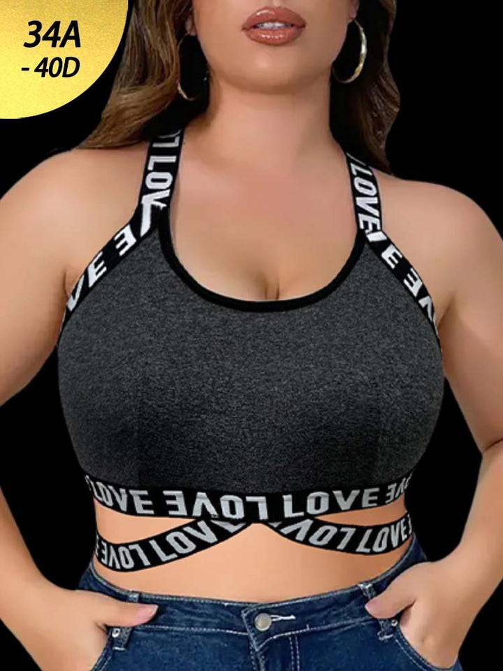 Plus-Size Cross-Strap Lettered Wireless Bra – Stretch Fit & Minimizing Design