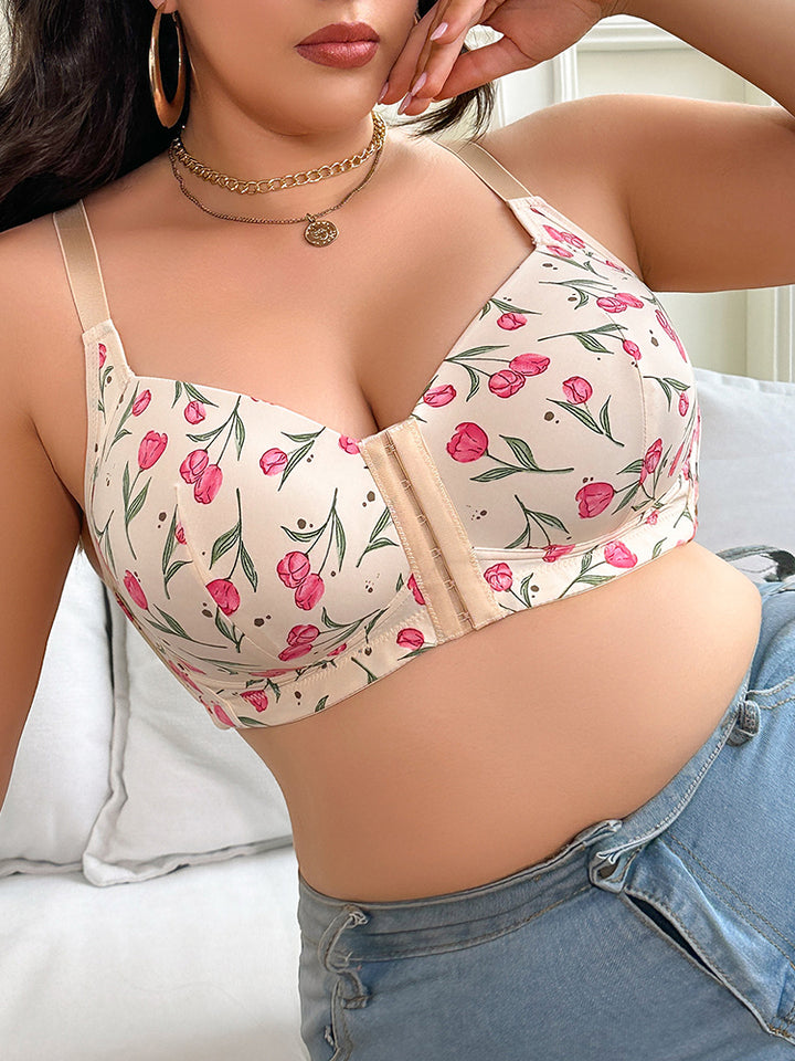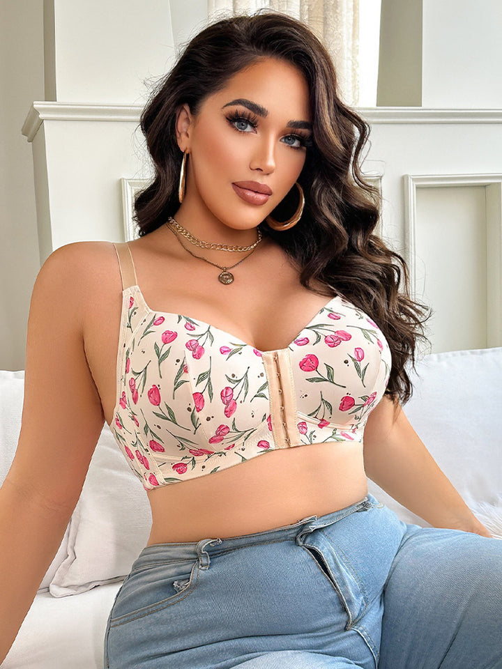 Enjoy a fresh, nature-inspired look with our Plus-Size Front-Closure U-Back Bra, designed to lift, shape, and enhance comfort for fuller busts. The convenient front-closure design makes dressing effortless while ensuring a secure, flattering fit. Crafted with breathable, lightweight fabric, it gently pushes up and prevents sagging for a naturally rounded silhouette. The U-shaped back provides added stability, improves posture support, and creates a smooth, beautifully contoured back appearance. Wide straps help distribute weight evenly, reducing shoulder pressure throughout the day. The seamless construction ensures a clean, invisible finish under clothing, making it perfect for both casual and fitted outfits. With its soft feel and forest-inspired aesthetic, this bra blends everyday practicality with a gentle, romantic charm. Whether for daily wear or a confident, stylish moment, it keeps you supported, comfortable, and beautifully lifted.