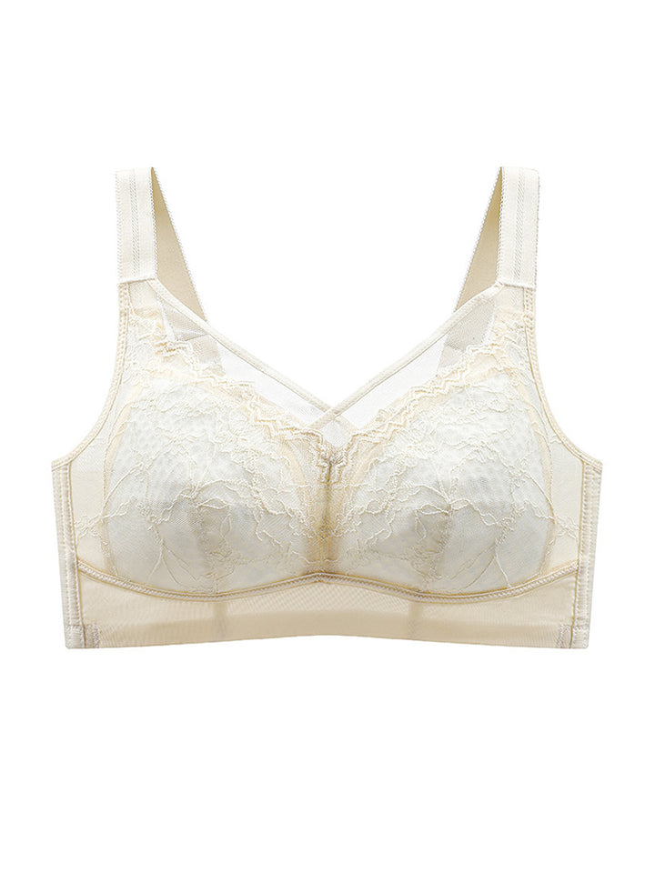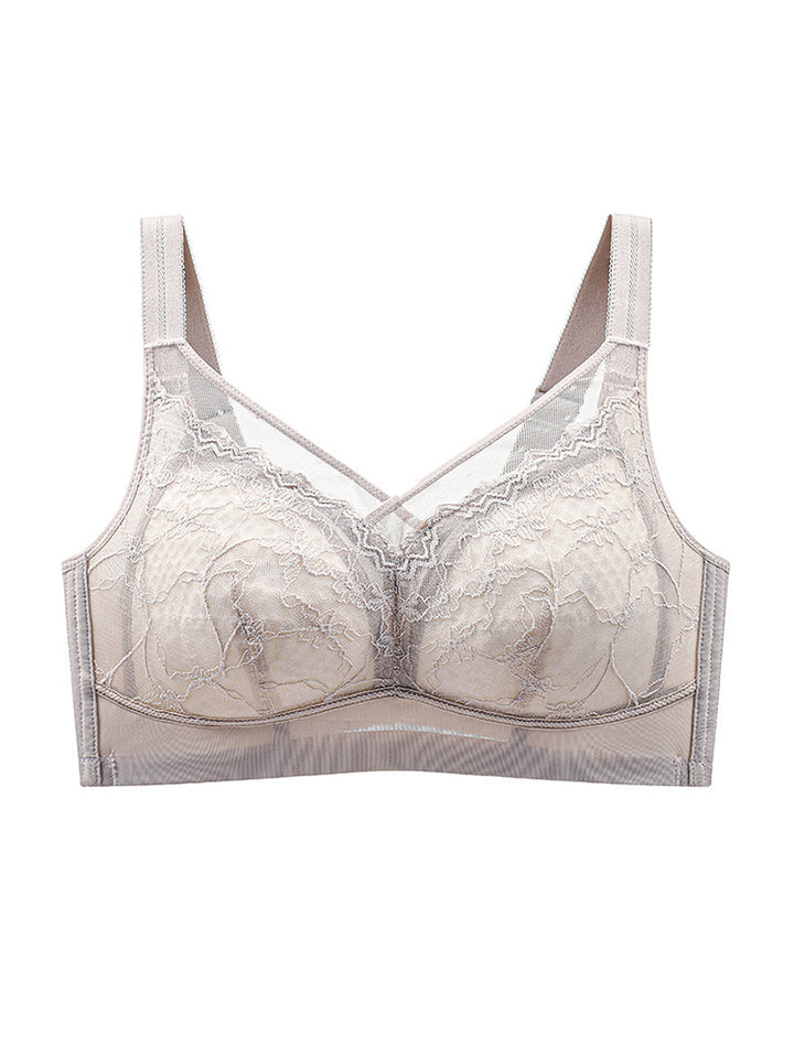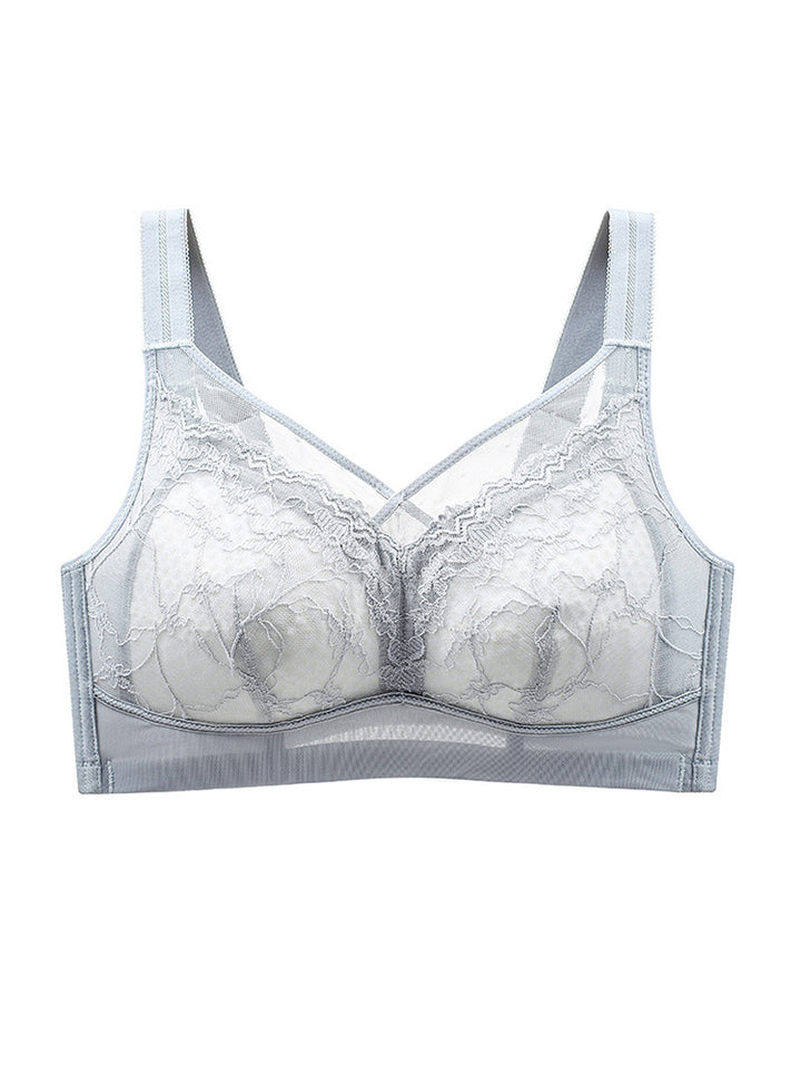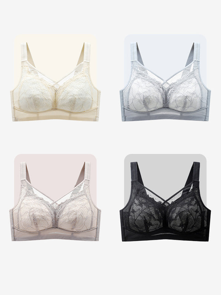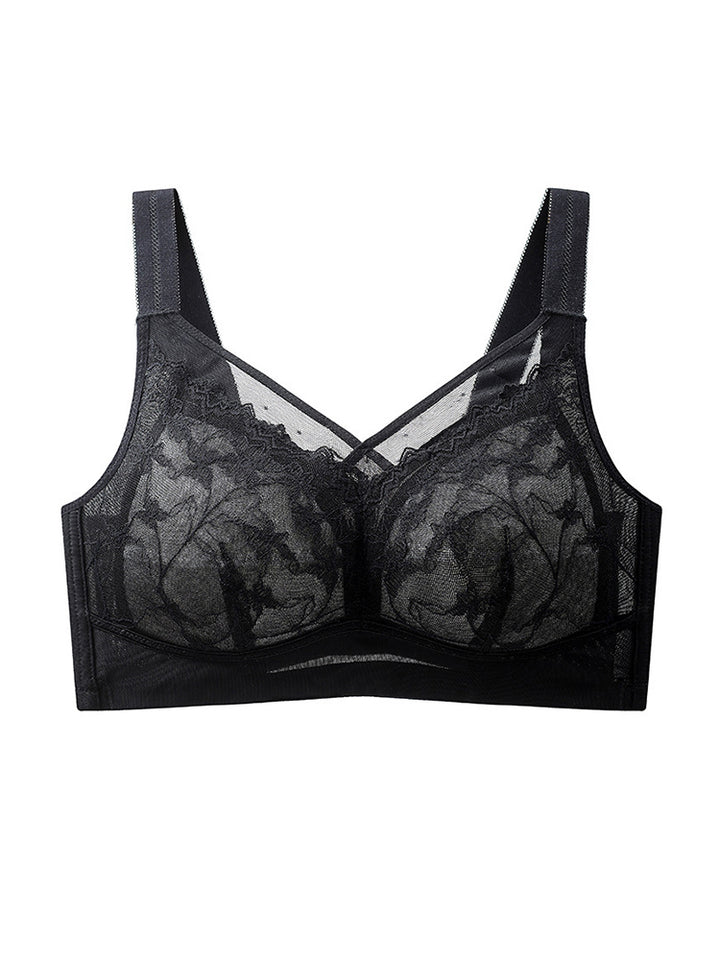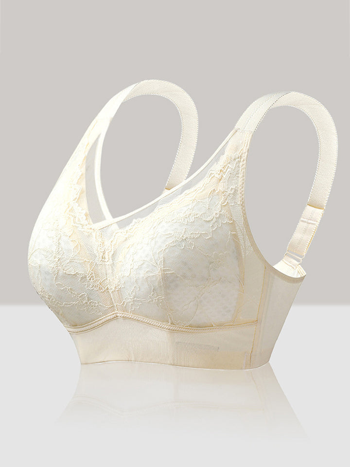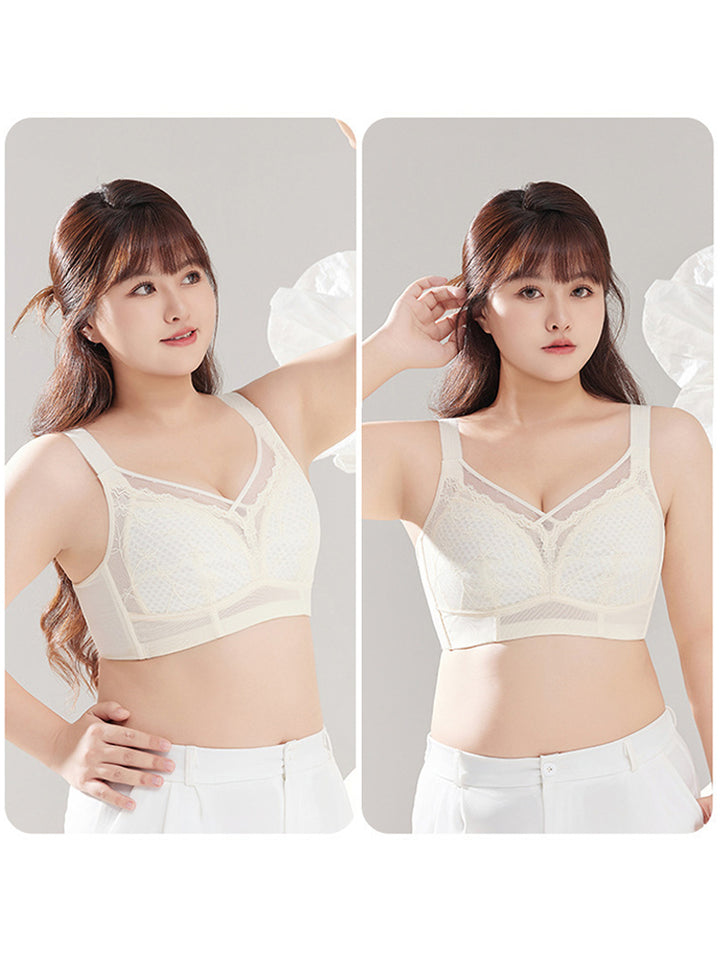 Plus-Size Full-Coverage Minimizing Lace Wireless Bra – Supportive Lift