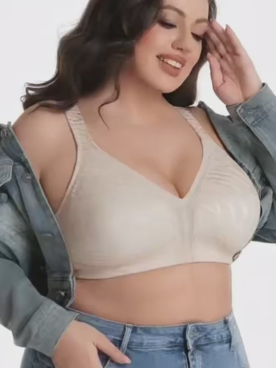Enjoy all-day comfort and a naturally smaller-looking silhouette with our Plus-Size Full-Coverage Minimizing Bra, thoughtfully designed for fuller busts. The full-coverage cups provide secure support and balanced shaping, helping reduce projection for a smooth, flattering look.   Crafted from soft fabric with delicate lace detailing, it feels gentle against the skin while remaining breathable and lightweight. The thin cup design offers comfortable structure without bulk, making it ideal for everyday wear. Supportive construction helps prevent sagging and keeps the bust comfortably in place throughout the day. Wide adjustable straps and a stable underband distribute weight evenly to reduce shoulder strain. Perfect for women seeking a soft, breathable, and minimizing bra that blends comfort, support, and understated elegance.