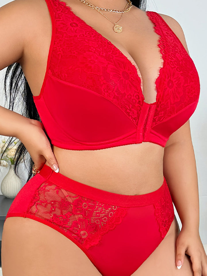Indulge in pure allure with our Plus-Size French Lace Front-Closure Lingerie Set, a captivating blend of sensuality and elegance. This exquisite set features a sheer lace bra with a convenient front-closure design that enhances your curves while ensuring an easy, secure fit. The soft lace cups offer gentle lift and shape, creating a naturally flattering silhouette with a touch of seductive charm. Matching lace panties complete the look, adding confidence and sophistication from every angle. Crafted from breathable, lightweight fabric, it feels luxuriously smooth against the skin—perfect for special occasions or when you simply want to feel irresistibly beautiful. Designed for the modern woman who embraces both comfort and desire, this set redefines everyday elegance with a hint of French romance.