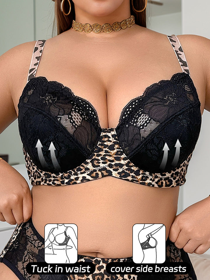 Plus-Size Leopard Print Underwire Bra – Sexy Lift & Support for Full Busts
