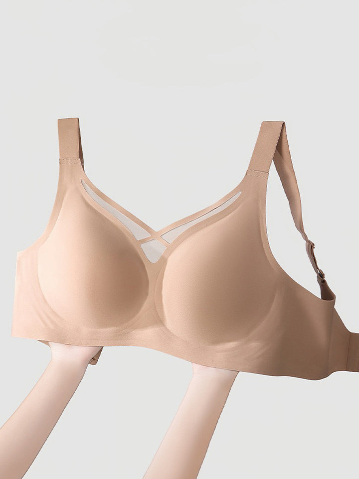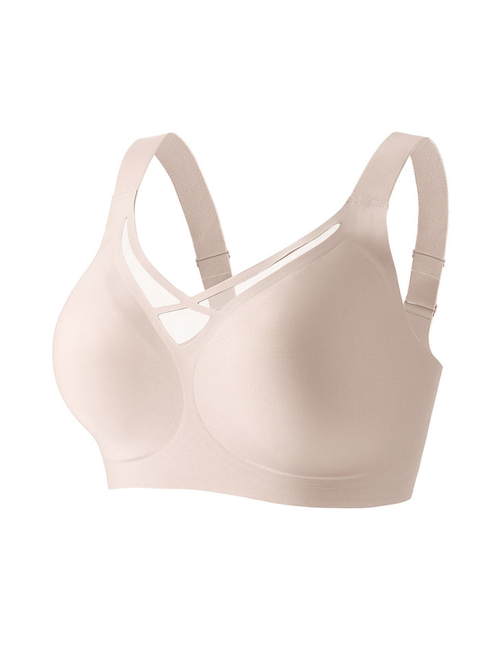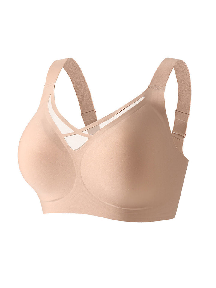 Plus-Size Mesh-Panel Seamless Wireless Bra - Minimizing & Light Shaping