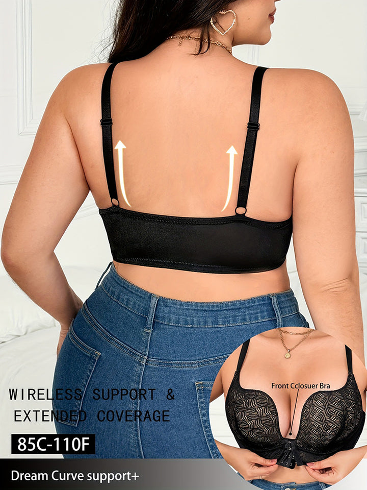 Plus Size Sexy Front-Closure Underwire Bra - T-Back Design