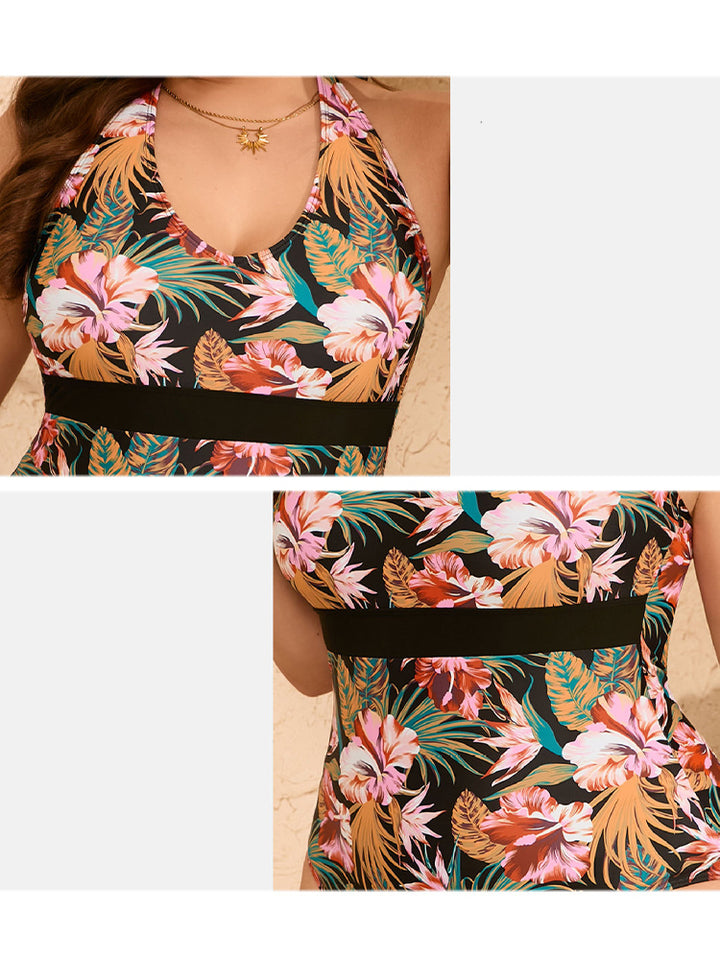 Plus Size Strappy Swimsuit with Open Back & Tie Cover Up Skirt