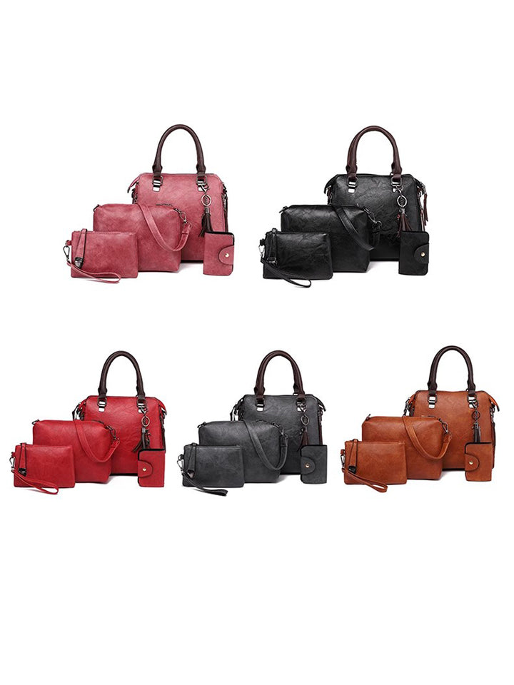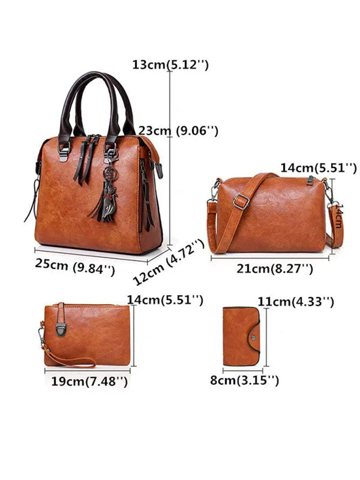 Women Leather Handbags Multi-function Crossbody Bags Purse Set 4pcs