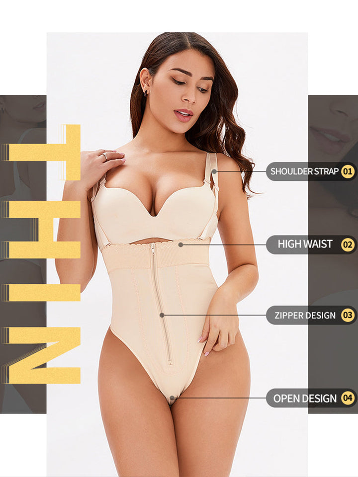 Women Zipper Seamless High Waist Thong Tummy Control Body Shapewear