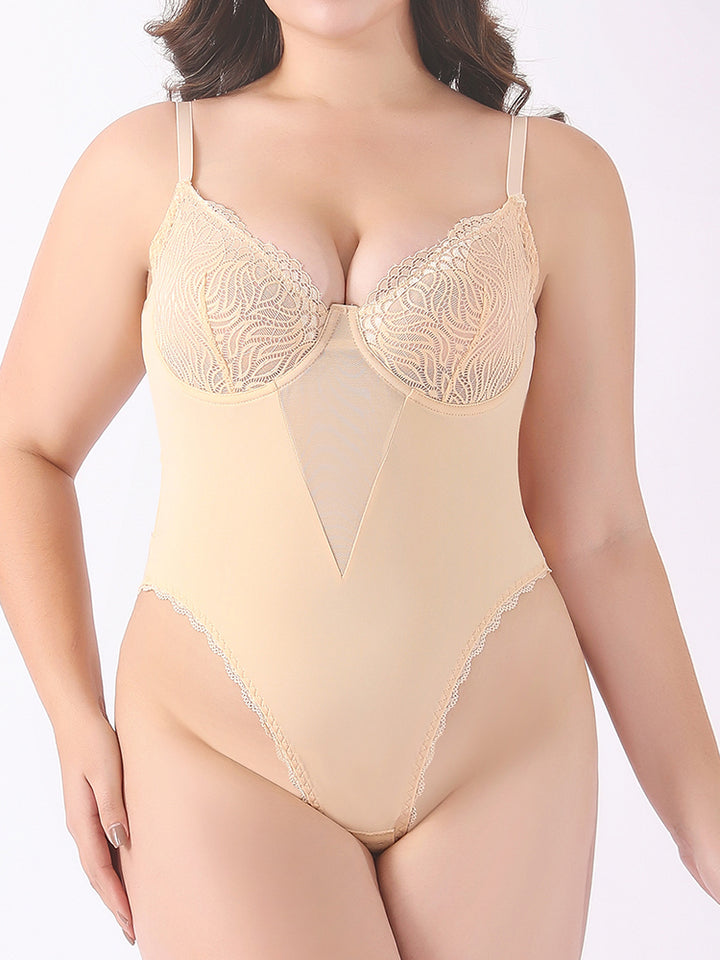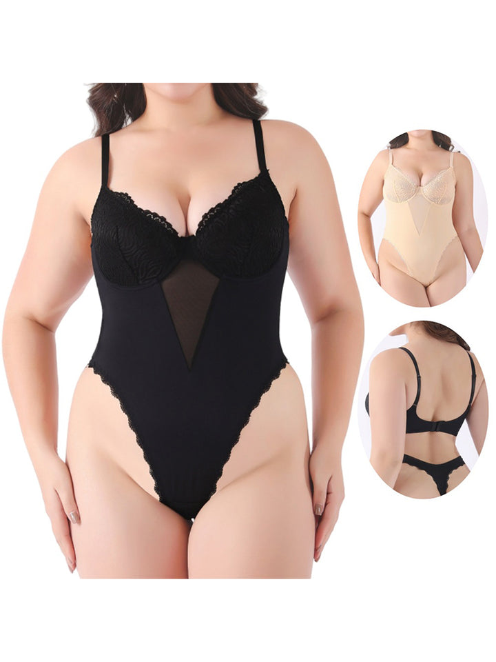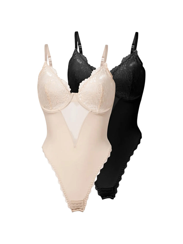 This sleek bodysuit features a deep V-plunge neckline that elegantly elongates the neck and complements low-cut tops and dresses, creating a stunning silhouette. The stylish backless design ensures versatility for various back-revealing ensembles. Crafted from seamless, breathable nylon and spandex fabric, it offers all-day comfort while providing targeted compression that smoothes the waist, controls the tummy, and lifts the buttocks for a flawless hourglass figure.