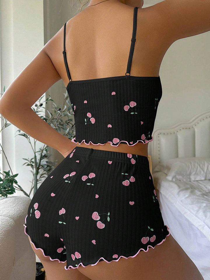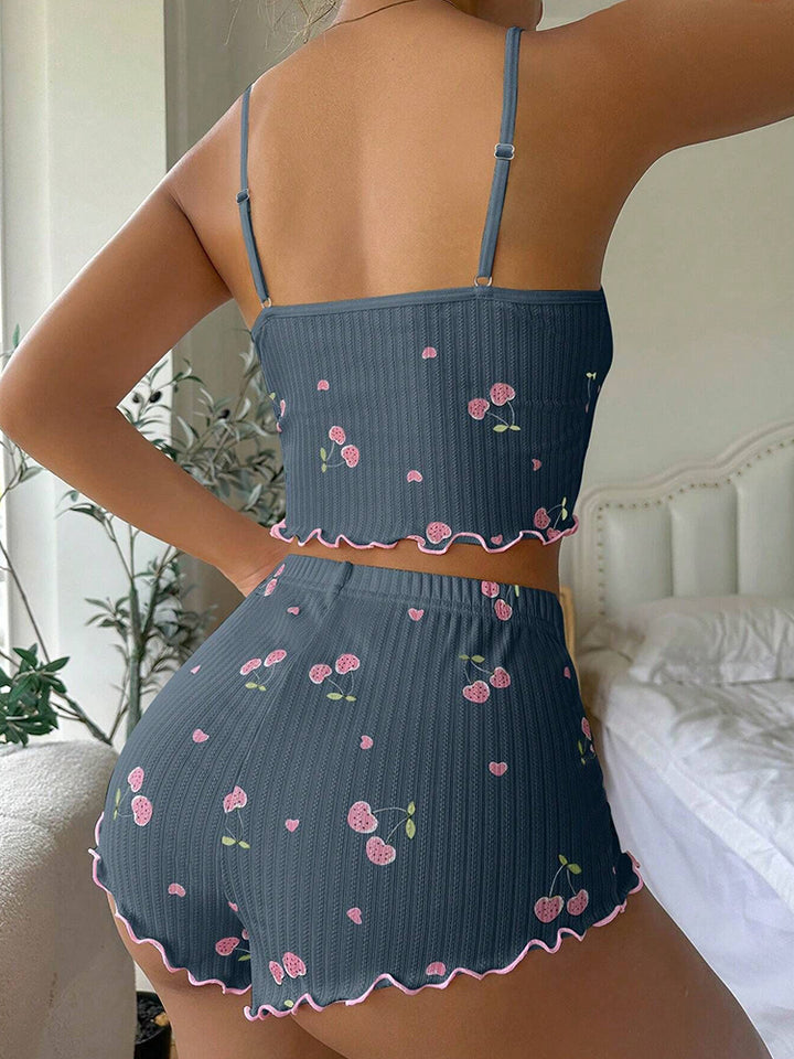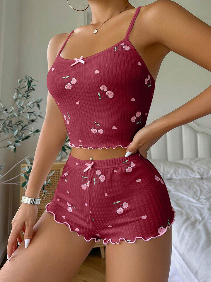 Women's Jacquard Print Camisole & Shorts Pajama Set - Loungewear Sleepwear Homewear