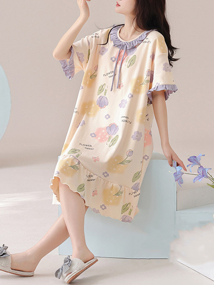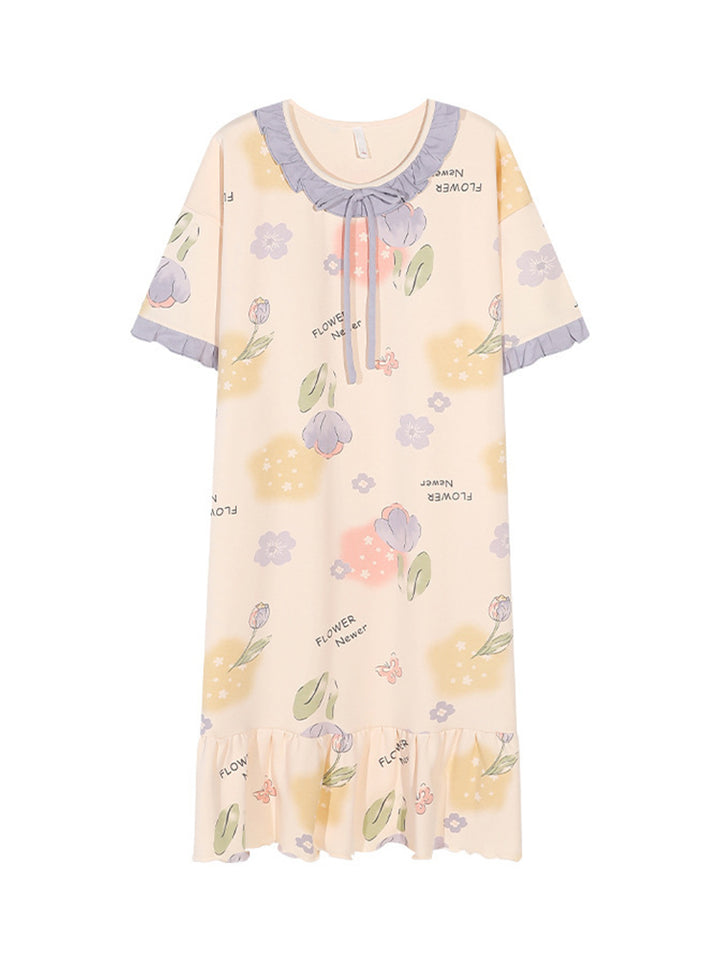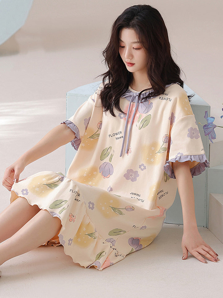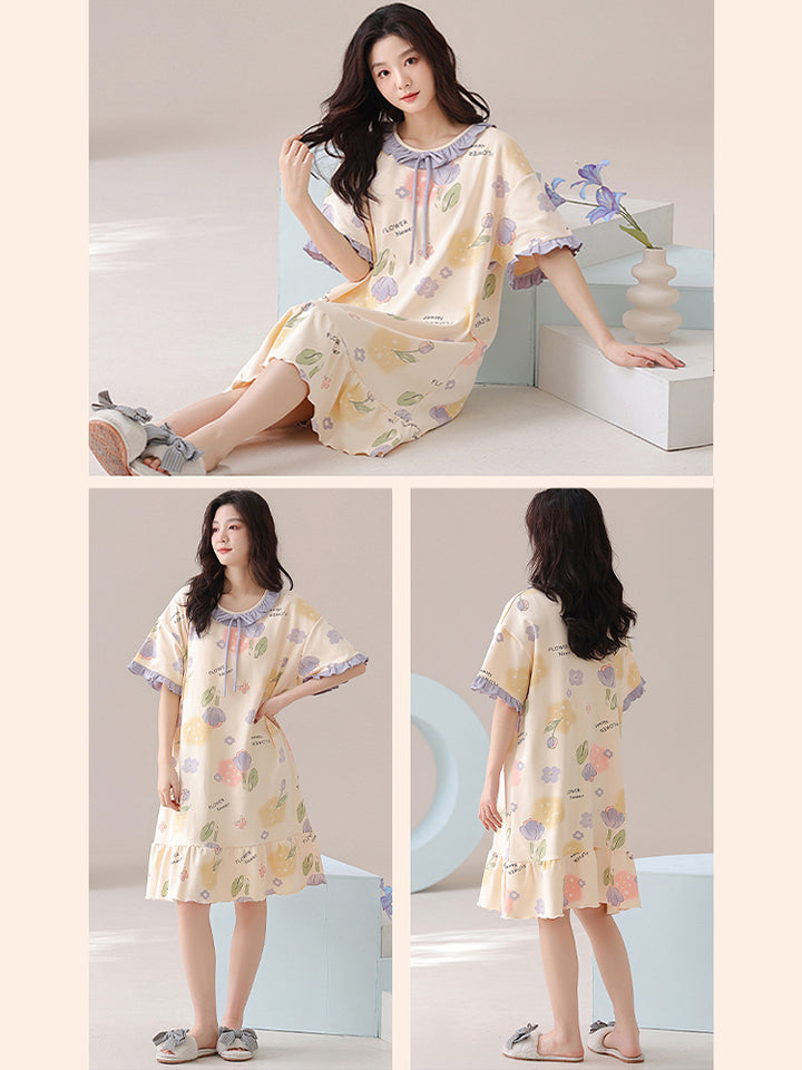 Women's Summer Short Sleeve Sleepwear Nightdress with Built-in Bra Padding offers the ultimate combination of comfort, support, and style for your home and bedtime routine. This lightweight nightdress is crafted from soft, breathable fabric perfect for warm summer nights, featuring a convenient short sleeve design and built-in bra padding that provides gentle shaping and modesty without the need for an extra undergarment. The integrated padding ensures a smooth look and effective anti-show-through protection, making it ideal as both sleepwear and versatile loungewear for relaxing at home. Designed for ease and everyday wear, this dress promises all-day comfort with its effortless style and practical support.