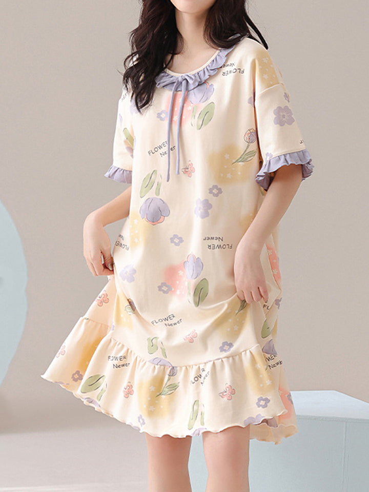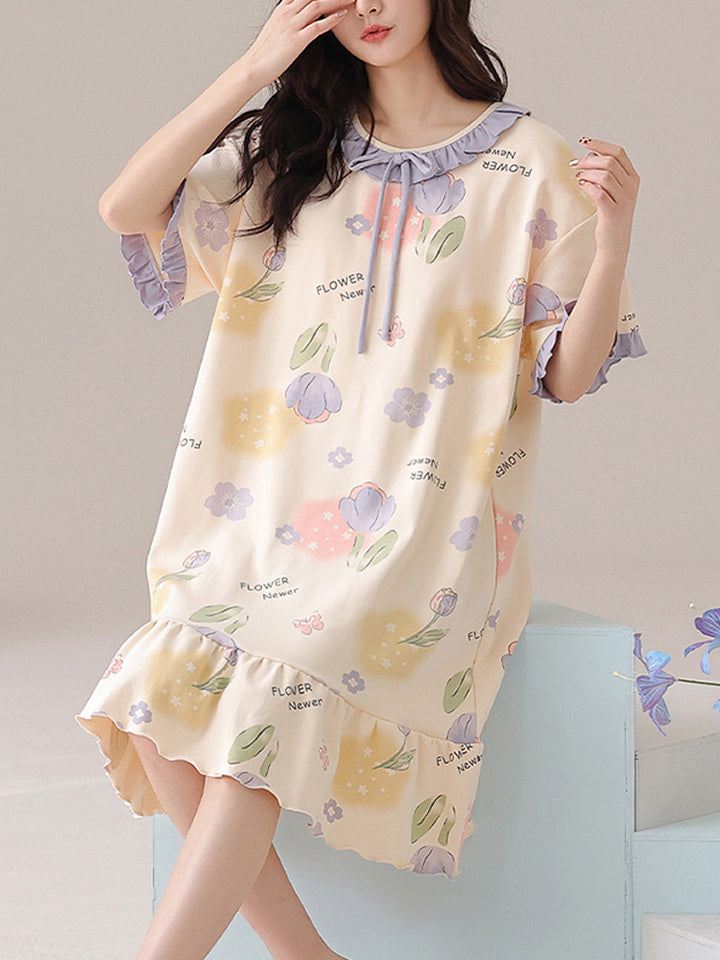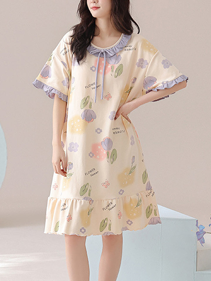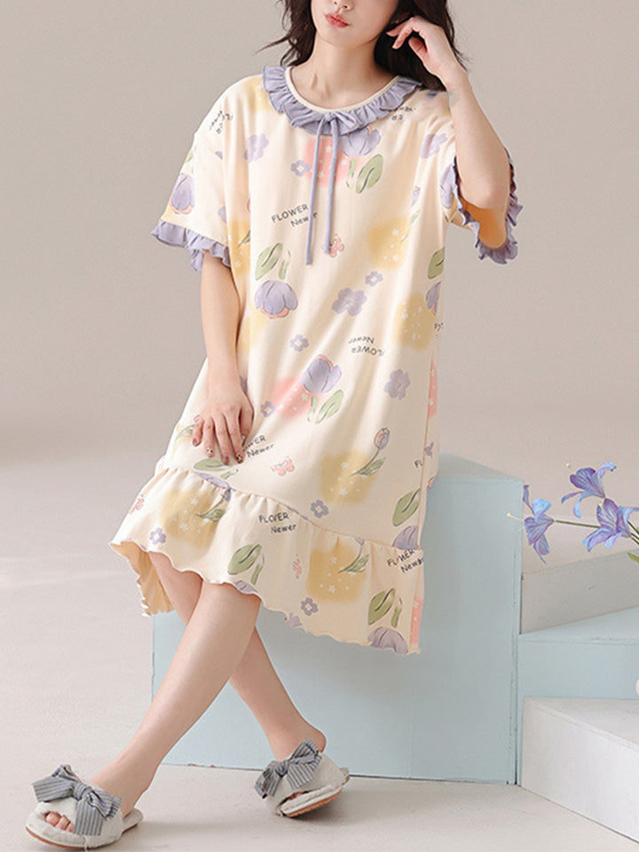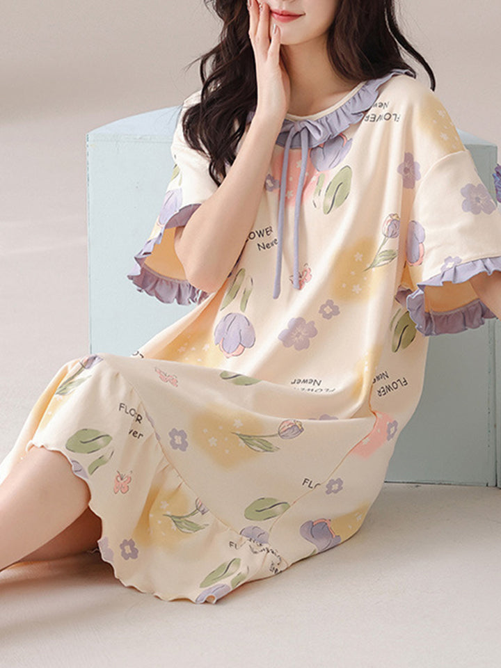 Women's Summer Short Sleeve Sleepwear Nightdress with Built-in Bra Padding offers the ultimate combination of comfort, support, and style for your home and bedtime routine. This lightweight nightdress is crafted from soft, breathable fabric perfect for warm summer nights, featuring a convenient short sleeve design and built-in bra padding that provides gentle shaping and modesty without the need for an extra undergarment. The integrated padding ensures a smooth look and effective anti-show-through protection, making it ideal as both sleepwear and versatile loungewear for relaxing at home. Designed for ease and everyday wear, this dress promises all-day comfort with its effortless style and practical support.