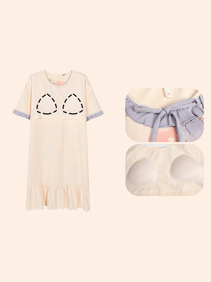 Women's Short Sleeve Sleepwear Nightdress with Built-in Bra Padding